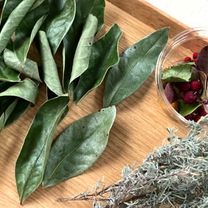 クリスマスリースに使った月桂樹の葉っぱが完全に乾燥したので、煮込み料理に使いたいと思います。爽やかな良い香り!
